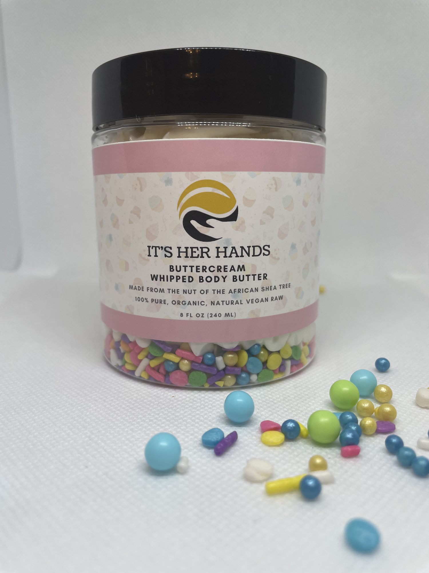 Our luxurious whipped body butter is a decadent blend of raw refined shea butter and oils. She smells of the rich warm aroma of buttery, butter cream frosting with hints of vanilla. It hydrates, soothes, and softens the skin. This natural and organic beauty easily absorbs leaving skin soft and glowing. It is suitable for all skin types.